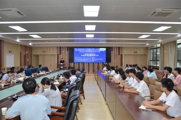 下午,周克权教授在4号实验楼会议室为师生作“葡萄皮提取物对餐后高血糖预防作用”主题学术报告。他以糖尿病特性、现状以及传统与创新治疗等方面的介绍为切入点,从改善血糖控制、改善脂质代谢等方面介绍了降低糖尿病风险的策略,进而引出了有关抗氧化剂、葡萄皮益生菌等科学研究重点。周克权教授详细阐述了有关葡萄皮提取物的国内外研究进展,以及其对于开展相关科学研究和指导实践运用的可能途径,并结合自身研究阐释了葡萄皮提取物对餐后高血糖起预防作用的作用机制,加深了对葡萄皮提取物的认识。在问答环节,周克权教授与williamhill威廉希尔的教师就GSE特异性抑制哺乳动物α-葡萄糖苷酶、抑制的剂量依赖性和竞争性、体外和糖尿病模型中的作用机制等方面展开了深入探讨与交流。