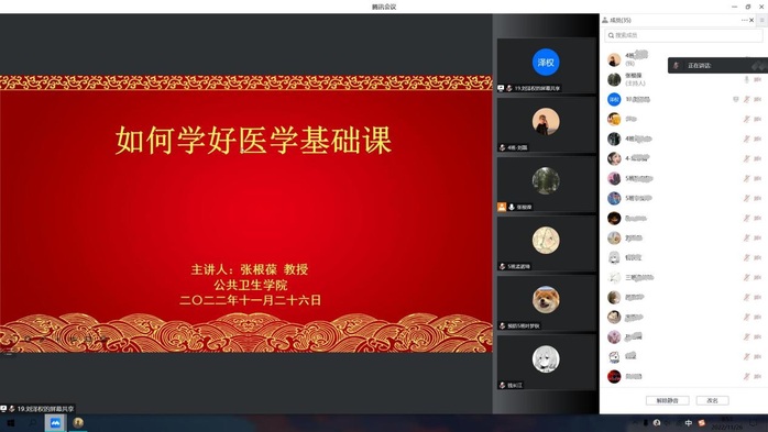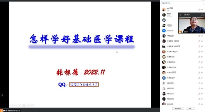 为进一步加强学风建设,加强学生对基础医学课程的了解,激发学习的积极性与主动性,帮助学生制定合理的学习计划,11月26日,williamhill威廉希尔联合校关工委开展“如何学好基础医学课”线上讲座,张根葆教授受邀担任主讲人,学院2021级全体学生参加本次讲座。