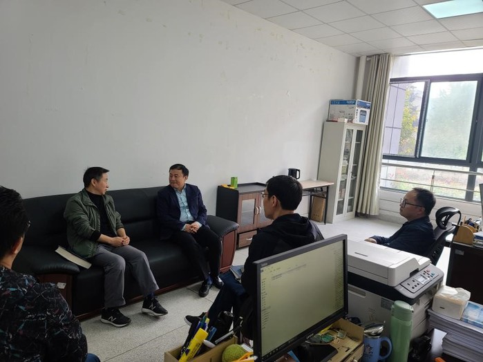 随后,廖圣宝一行深入到陈少鹏研究员的办公室详细了解实验室建设、科研工作的开展等有关情况。实地查看正在建设的实验室,询问工作期间存在的问题和困难,并现场予以答复解决。