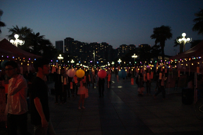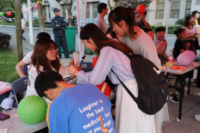 此次活动以“彩灯连心,书信绘情”为主题,以精彩的口琴演奏开场表演拉开了活动帷幕。活动前期,各学院团委学生会统筹规划、相互配合,利用QQ公众号和微信公众号充分宣传,完成了信纸发放、灯笼悬挂、彩灯布置、灯谜张贴等准备活动,并积极引导同学们书写与主题相关的书信内容,保证了活动的顺利开展。活动过程中,同学们积极参与到各项活动中来,营造了热闹而不喧嚷的氛围。本次活动分为两个部分,第一部分为“树洞交流”,大家在帐篷前领取书信,将自己心中的压力、想倾诉的话、生活中的迷惑、小小心愿等写在信纸上,以匿名双盲或匿名定向的形势与陌生人或指定收件人进行书信交流,从而通过“见字如见人”的含蓄方式释放心理压力。第二部分为“猜灯谜”,彩袖翩翩,国学风尚,同学们穿梭于灯海中,积极热情地参与心理健康知识猜灯谜活动,在感受传统民族风俗魅力的同时寓学于乐,积累学习心理健康知识点。灯前行人熙攘,月下彩云绚丽,此次活动持续了两个多小时,在众人的齐心协力下,活动取得圆满成功。